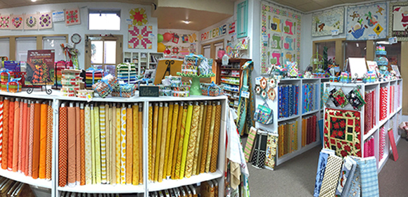 We’re a sweet little quilt shop offering hundreds of bolts of 100% cotton fabrics, a wall of notions and a large assortment of buttons. We have pre-made gift items (for those not wanting to sew) and feature the whimsical appliqué works of owner, Holly (Eat Cake Graphics). If you have a questions or just need some fabric therapy, we’re here for you.
